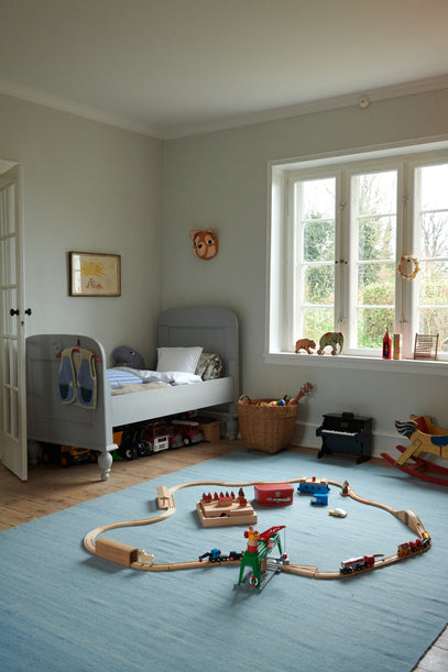 The room itself joins the kitchen on one side, and the rest of the house on the other – making it a room where parents hang out too. There still is, however, lots of space for playing on the floor, which is, needless to say, perfect for an active 3-year old, who loves to dance and play with his cars, trucks and trains.