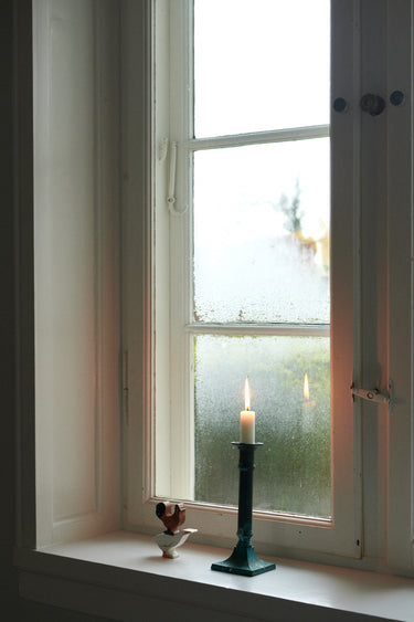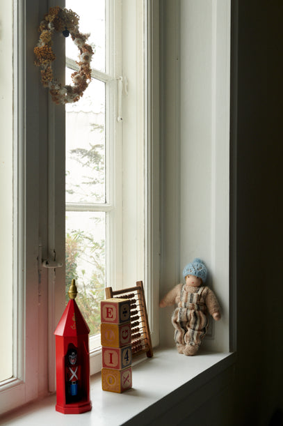 Toys on display in the window sill, and a peak out into the garden, which is where the berries grow during summer.