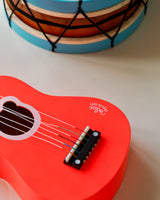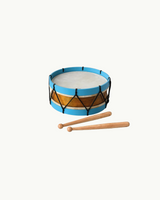 This colourful, classic drum is made from wood and real skin, and comes with two wooden drum sticks. The drum is ready to be carried around and may be played on, on both sides.