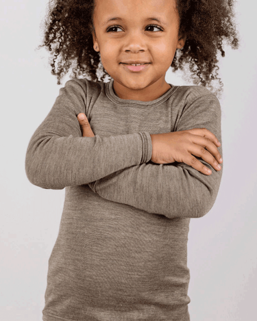 Softest long sleeved shirt made from wool and silk that will keep your child at a constant, perfect temperature all day long.