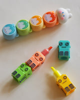 Funny little stackable robot highlighters. Featuring a playful design and vibrant colours, this set is perfect for getting organised while adding a cheerful touch to homework and revision.