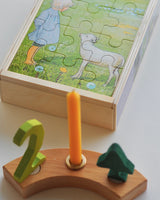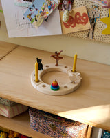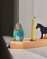 Traditionally, a candle for each year of your child’s age is pegged into the birthday ring. The other holes can be filled with painted wooden figures. The birthday ring can be easily customized. Kids can choose what figures to decorate the ring with based on their interests.