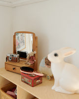 The bunny lamp gives off a warm and soft light. Place it by the changing table for a late night diaper change, or put it by your child's bed for added comfort during the dark hours. The lamp is made from thermodynamic moulded PVC, which does not heat up, and the light can therefore be left on during the night.