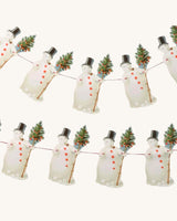 A beautiful and cosy garland featuring ten repeated motifs of a snowman with a Christmas tree.