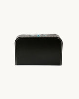 This cardboard suitcase come with cream coloured thread overstitching, and with a metal lining protecting the edges.