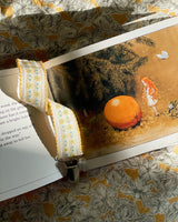 En dag da elverpigen var på opdagelse i skoven, fik hun øje på noget stort, gult og rundt, som lå i mosset. Ih, sikke et stort æg, tænkte hun. Hvor mon det kommer fra? Hun kiggede op og fik øje på et stort hul i skyerne lige over sit hoved. Nu forstår jeg, tænkte hun, den stakkels sol har tabt sit æg og kan ikke finde det, fordi skyerne er i vejen!