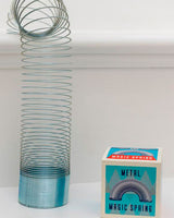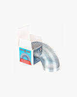 It features a metal spring which can walk down the stairs, when placed on the top stair and then given a gentle push.