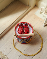 This colourful, classic drum is produced from French brand Vilac, who has been making quality toys for decades. It is made from wood, and comes with a shoulder strap and two wooden drum sticks, ready to be carried around and played on.