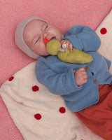 With a bell inside, the rattle doll provides both auditory and tactile stimulation. Shaped to make it easy for the baby to grasp and hold, while the soft textile makes it fun to chew on.