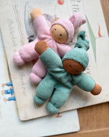 Nanchen dolls are always handmade, and always made from 100% organic materials. The Pimpel Doll is made from 100% organic cotton, and is safe for baby to chew on.