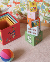 10 fantastic cardboard stacking blocks with numbers and Pippi illustrations.