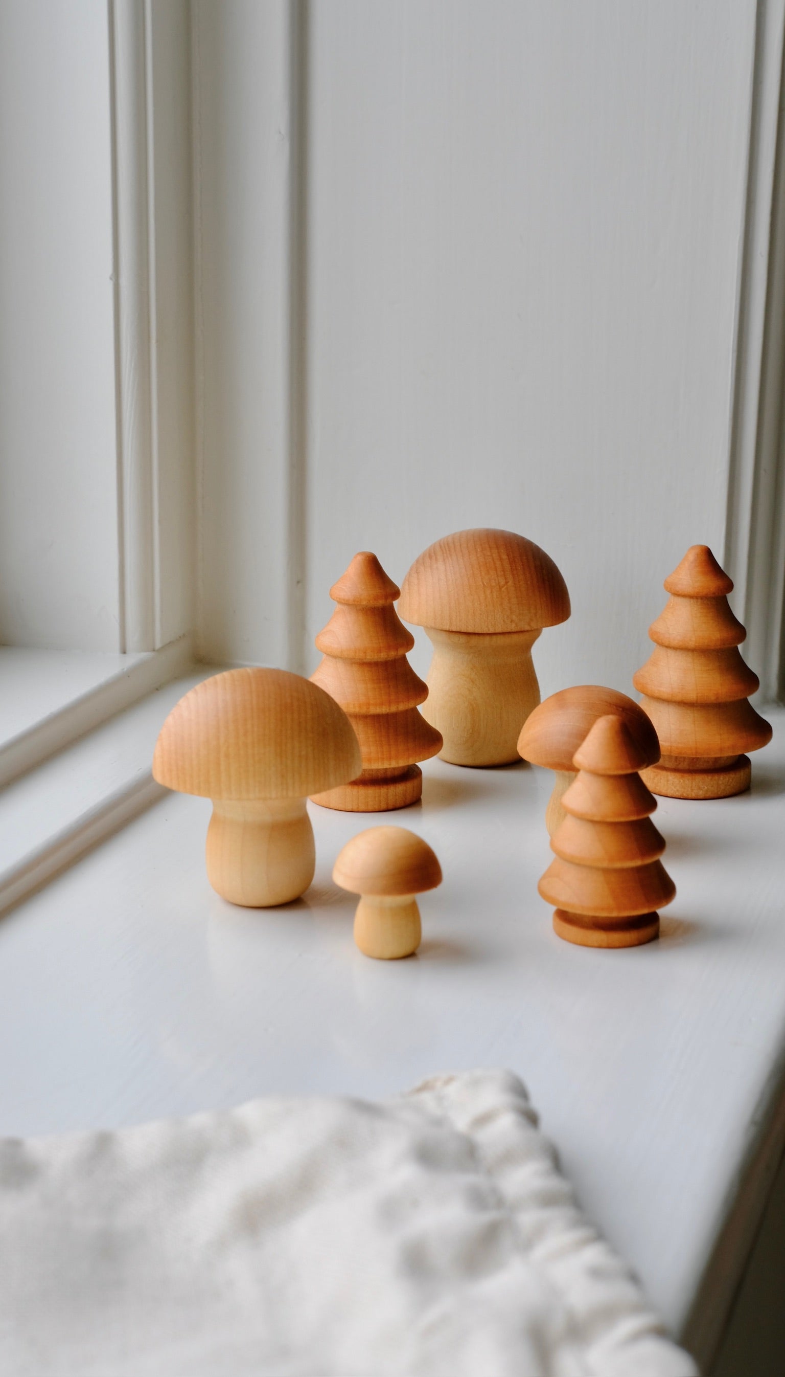 A lovely set of four wooden mushrooms and three trees – perfect for play or as small decorative elements in the children’s room.