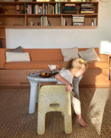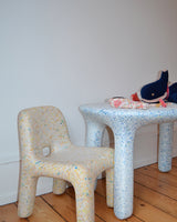 This is their table; a chubby-looking, playful table, matching the Charlie Chair perfectly. Its soft forms and rounded edges, as well as its sturdy body and legs, make this a great table for toddlers and kids.