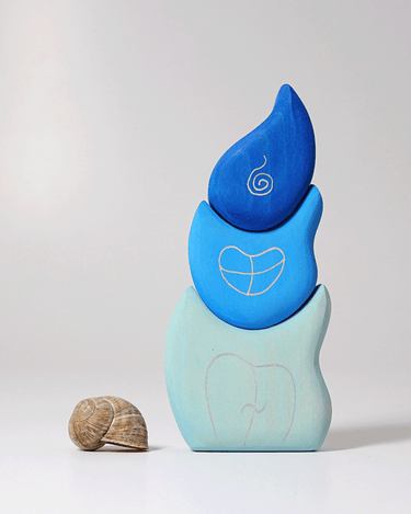 These colorful building blocks from Grimm's form a puzzle, but may also be used as a stacking toy or as part of a larger scene, where this set makes for a tower of water drops.
