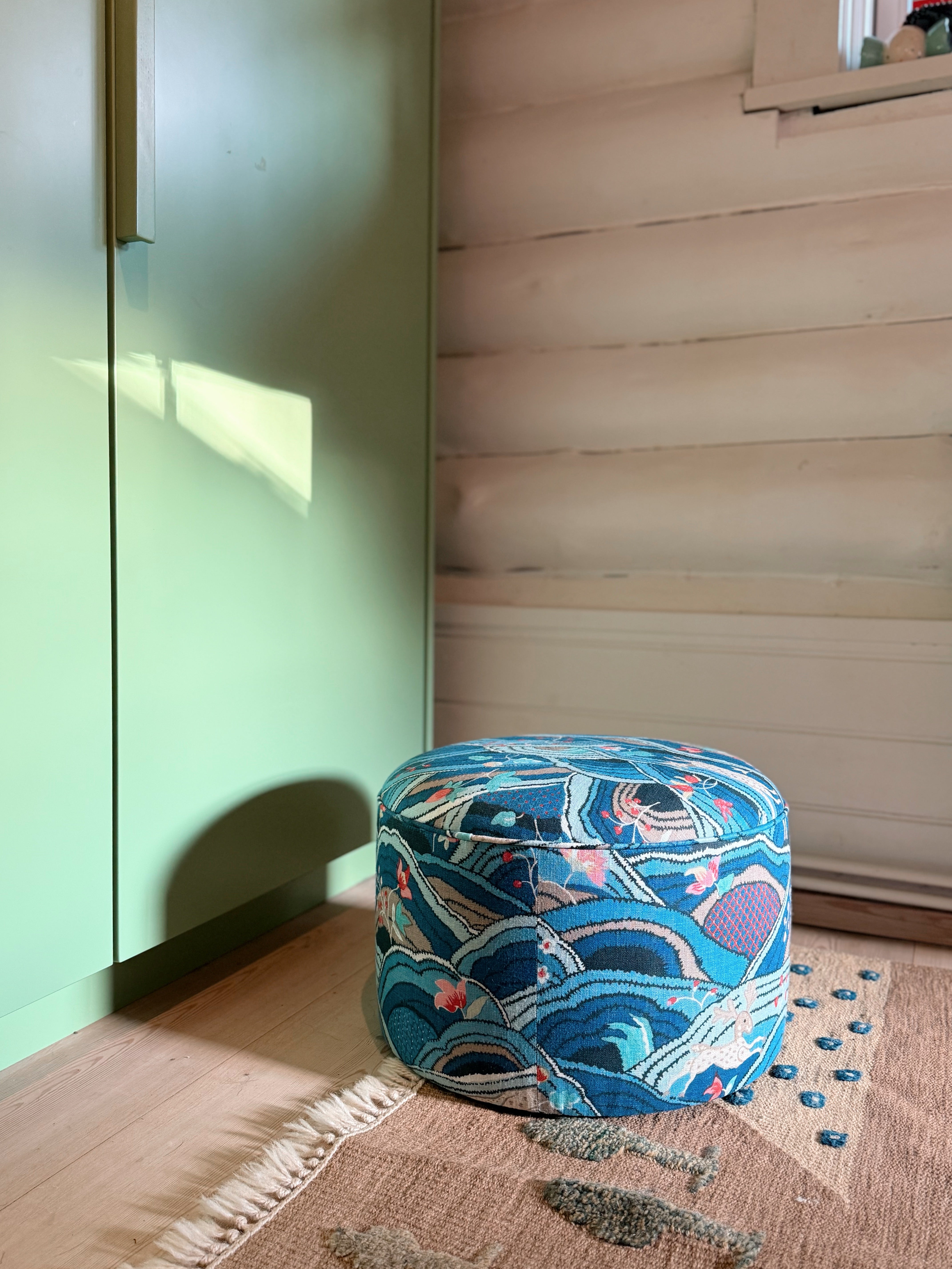 A wonderful small pouf for the kid's room made in collaboration with Tea and a Slice.