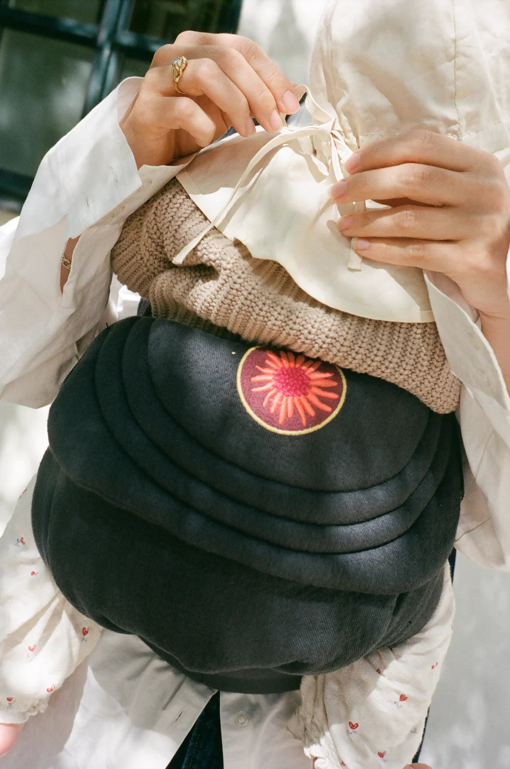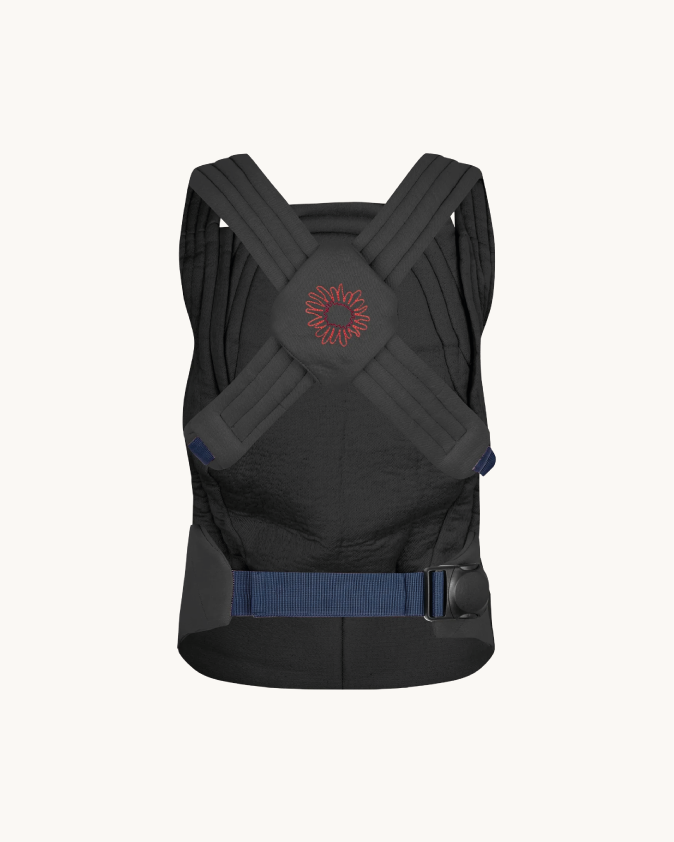 This unique baby carrier is the first of its kind: With only one easy-to-click button, it is put on in seconds. A zip on either side allows you to put in baby afterwards.