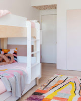 The Perch Bunk Bed is built from solid birch and Baltic birch plywood, and has a sturdy frame and solid rails on top.