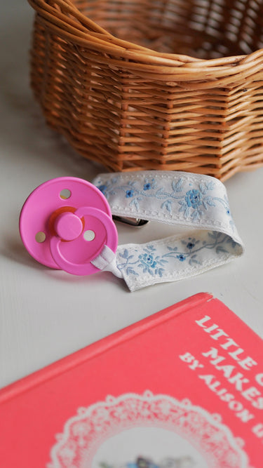 Matching our handmade pacifier clips, these 100% natural rubber latex pacifiers come in a variety of beautiful colours.