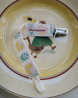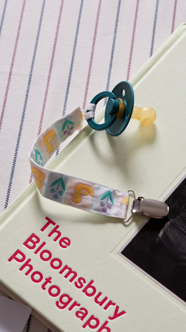 Crafted from the most beautiful vintage fabrics and each made by hand, these lovely pacifier clips come in five beautiful prints. Use the clip to attach the strap and pacifier somewhere on your baby's clothing for easy reach.