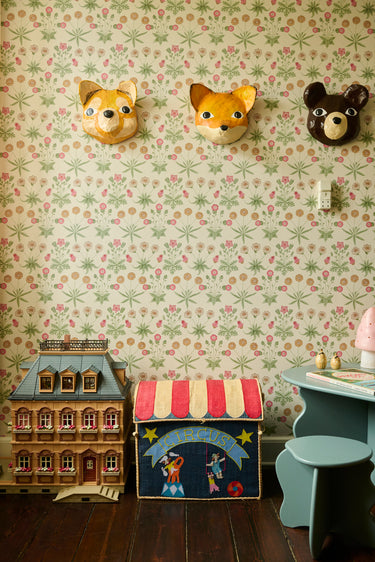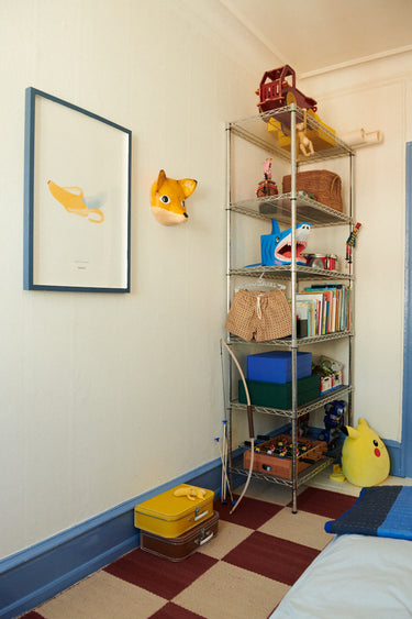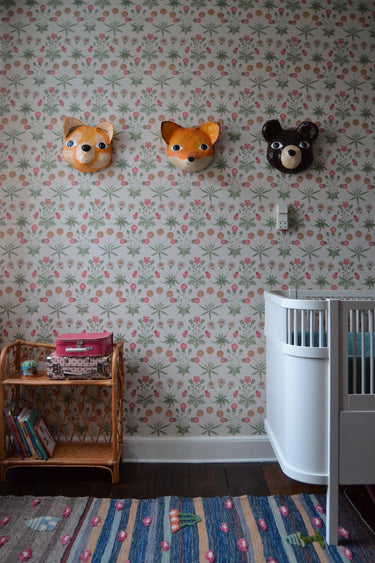 This beautiful mask made from papier-mâché is a fun way to add a bit of colour and charm to your baby's nursery or child's room. This one is Pedro, the Fox.
