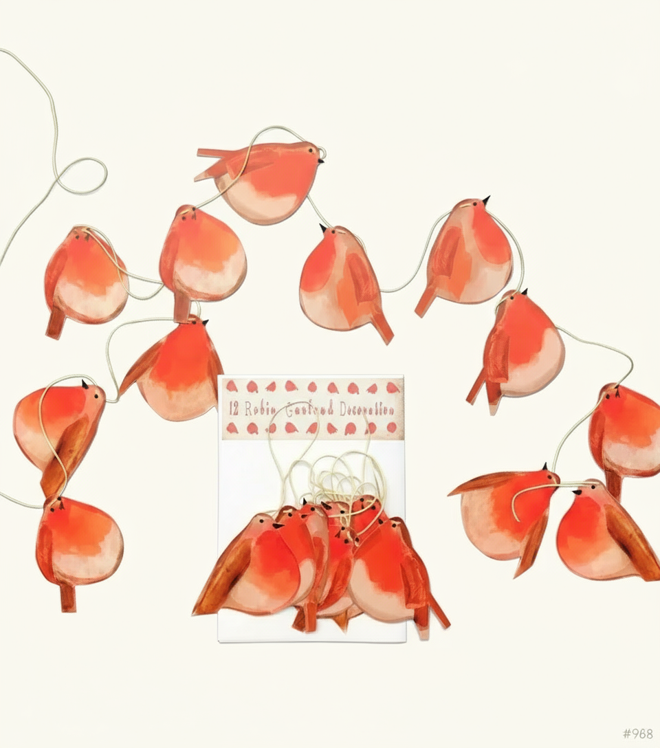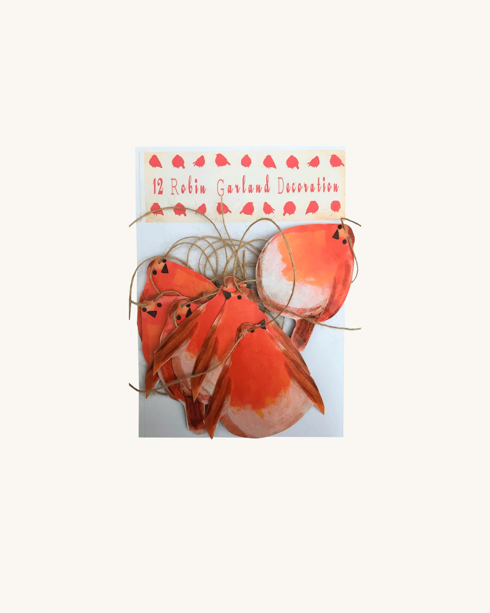 A wonderful garland with 12 sweet robins on a two-meter-long string.
