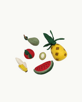 A fruit set that includes 6 pieces of fruit, perfect for the little play kitchen.