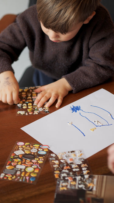 Small, squishy and tactile, these stickers can be used to add colour and fun to greetings cards, gift wrapping, craft projects, scrapbooks and more. This sheet of stickers is perfect for long flights or rainy afternoons.