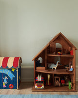 Pretty colours, a practical lid (the roof of the house), and wonderful, embroidered details make this storage basket suitable to place anywhere in the house.