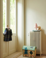 Pretty colours, a practical lid (the roof of the house), and wonderful, embroidered details make this storage basket suitable to place anywhere in the house.