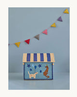 Pretty colours, a practical lid (the roof of the house), and wonderful, embroidered details make this storage basket suitable to place anywhere in the house.
