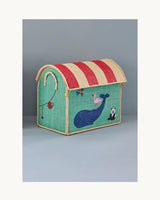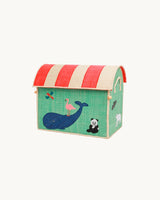 Use it for toys, teddies, diapers, shoes or whatever you would like to store when not in use. This series is available in three sizes, and this particular one features a whale, a flamingo and a cute panda.