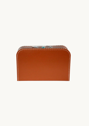 This cardboard suitcase come with cream coloured thread overstitching, and with a metal lining protecting the edges.