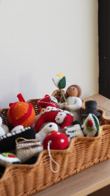 The ornament comes with a string and is ready to be hung on the tree. All Gamcha ornaments are handmade, and small variations in shape are expected.