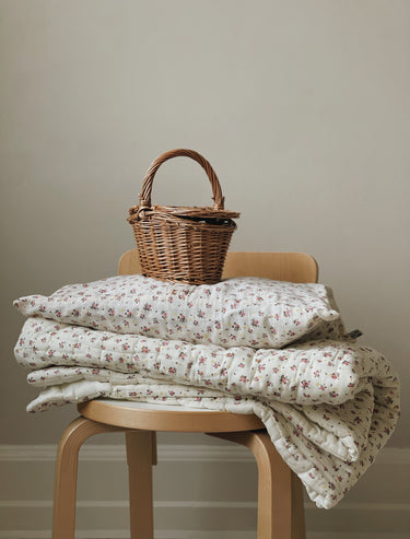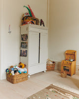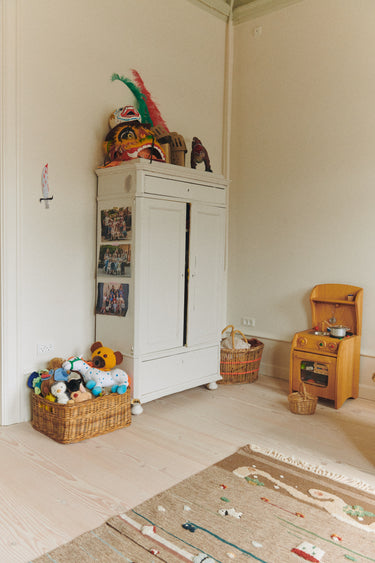 A little, cute rattan picnic basket, perfect size for all sorts of treasures. The lid opens from both sides, making it easy to pack and unpack toys.