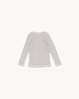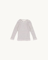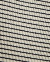 The Kishon Baby T-shirt is a soft 100% cotton, ribbed top with long sleeves in cream with navy blue stripes. The ribbed texture allows the fabric to stretch allowing for ease of fitting and wear. The ideal underlayer, t-shirt or elevated staple for days at home.