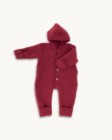 Keep your baby warm with this soft baby romper, made from certified organic wool fleece.