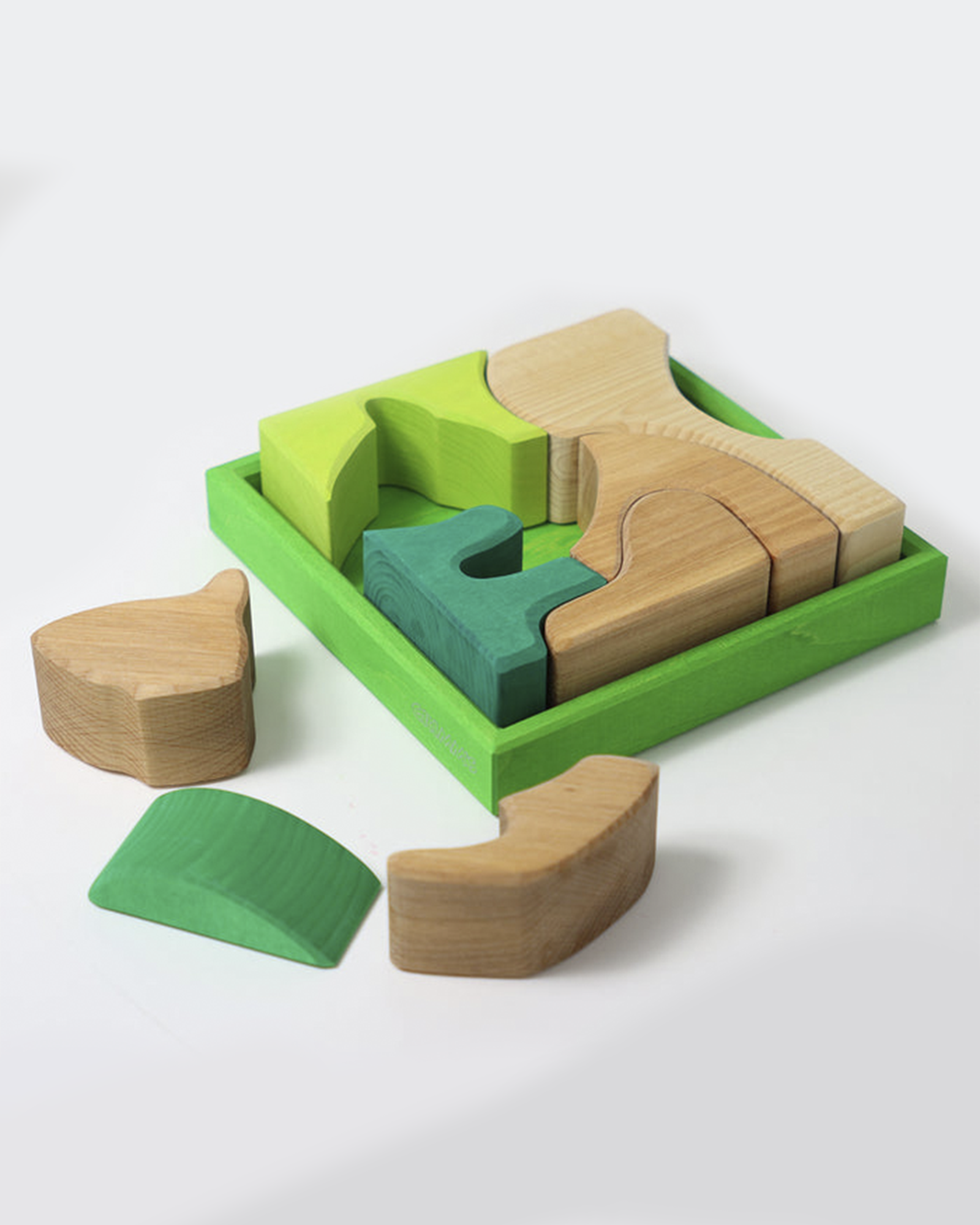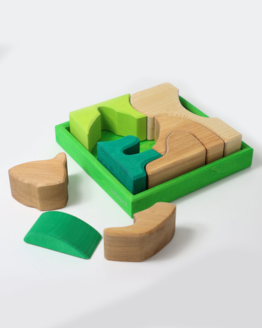 A beautiful building set/puzzle in shades of blue from German brand Grimm's. This set may be used both as a puzzle and as a building set with endless possibilities.