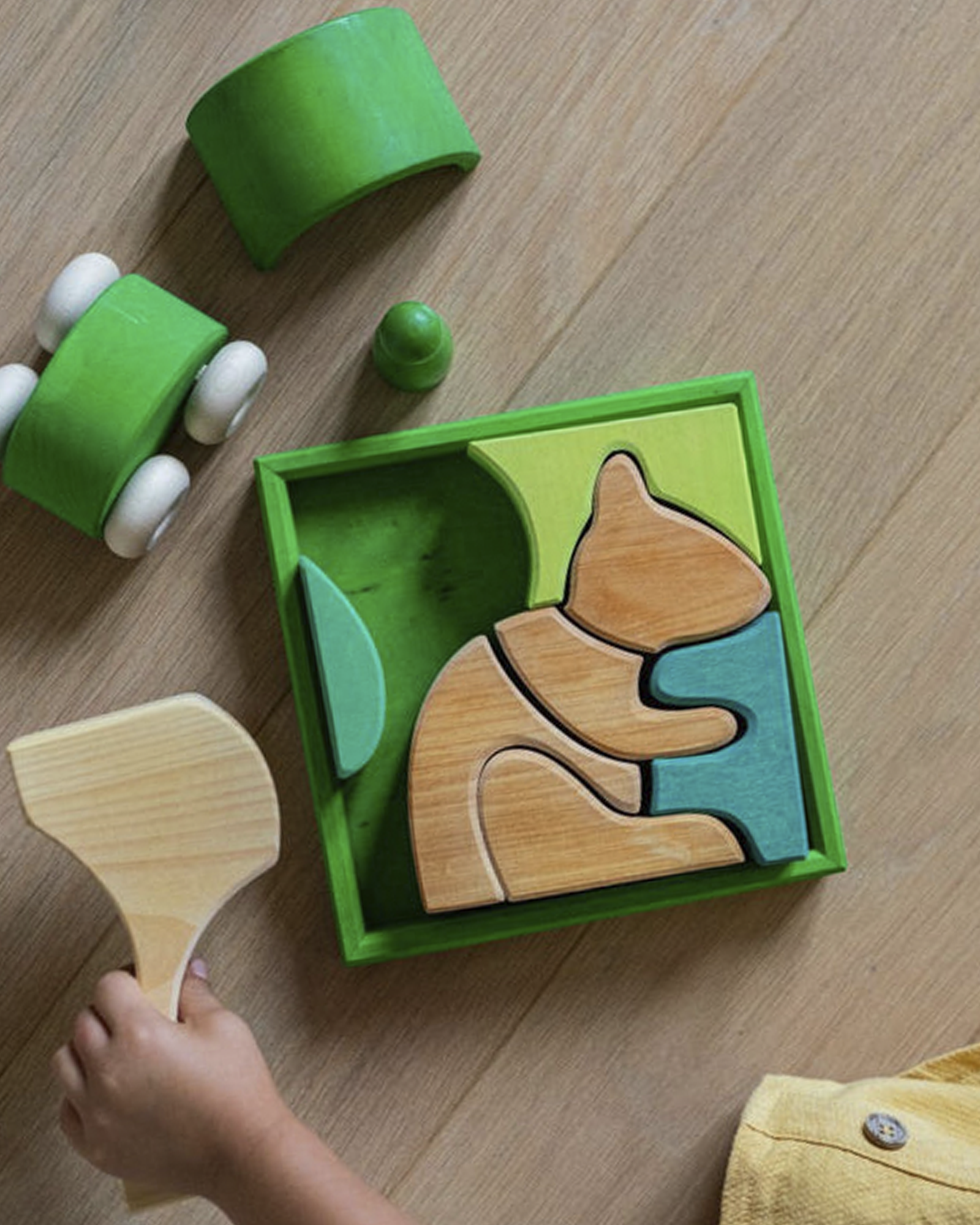 Made from European lime wood, non-toxic water based colour stain and finished with a non-toxic plant based oil.