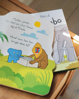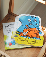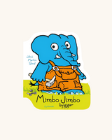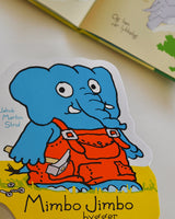 A hardboard book in the shape of Mimbo Jimbo. Follow Mimbo Jimbo as he builds all sorts of fun things—a race car, an airplane, a fried egg machine, and even a lighthouse. Luckily, his friends are there to help him along the way.