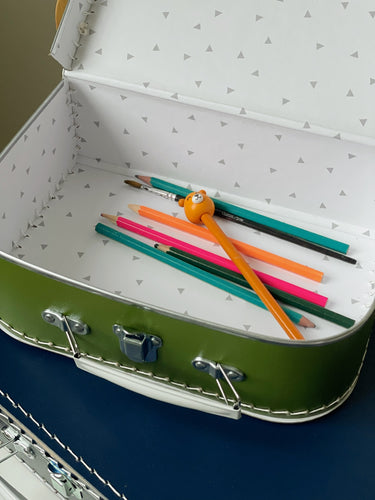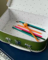 A wonderful green suitcase, perfect for treasures or for carrying stuff around the house, into the garden or on short trips.