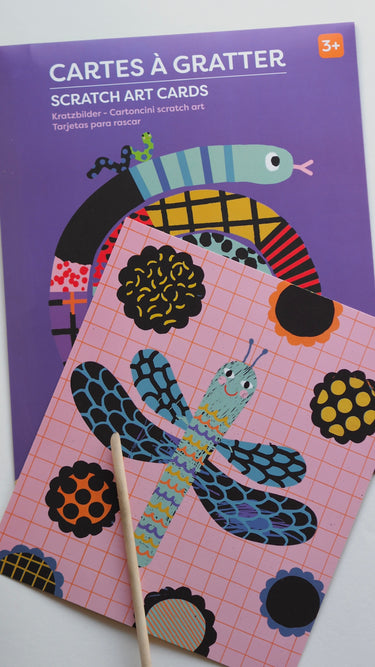 Gently scratch the card with the included beech wood stick to reveal pictures of the Toupitis. A fun, creative craft activity, containing 6 scratch art cards with pattern and 1 stick.