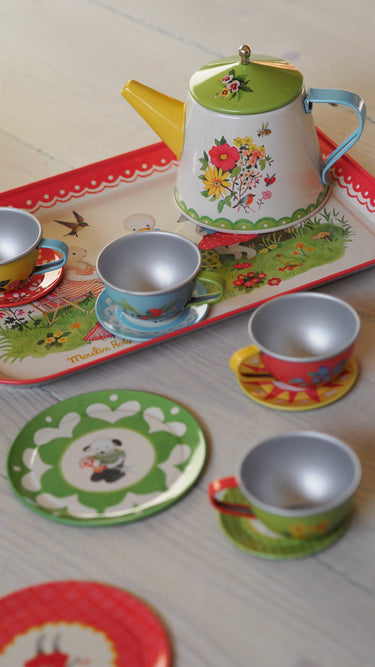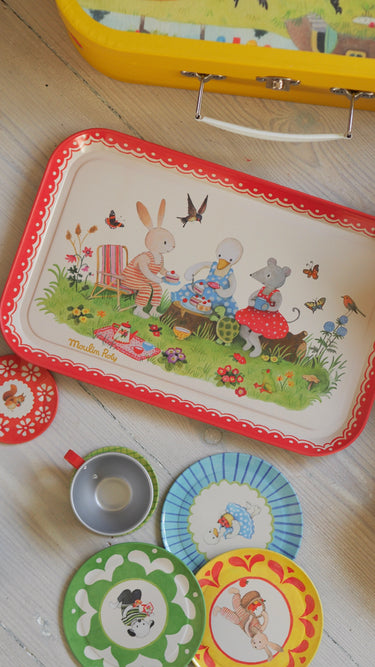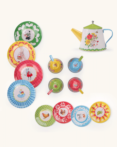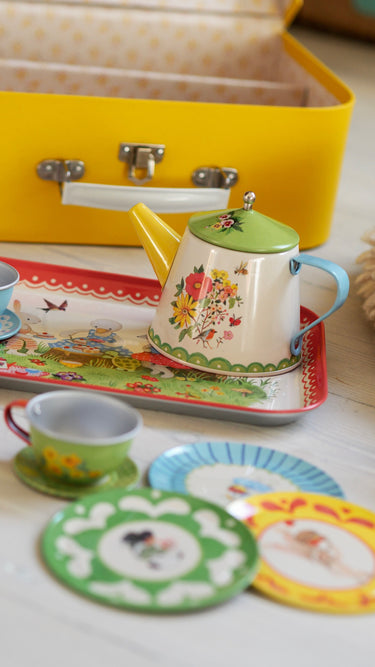 A cute suitcase with a full collection of tea service in lovely spring colours. This set is beautifully illustrated by Camille Jourdy.