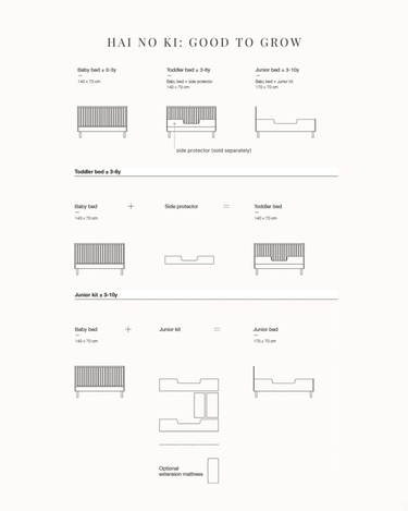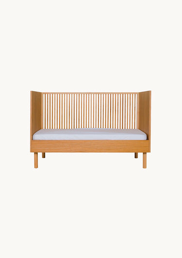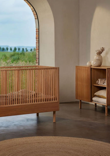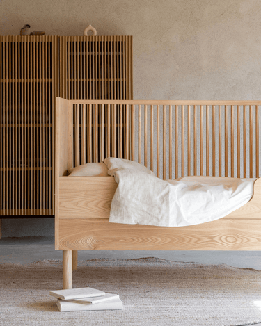 The Hai No Ki Crib is made from ash, which is sturdy and beautiful. The grains of the wood are visible. As a result, the crib has a very natural look, which looks great in both neutral as well as colourful nurseries and kids rooms.