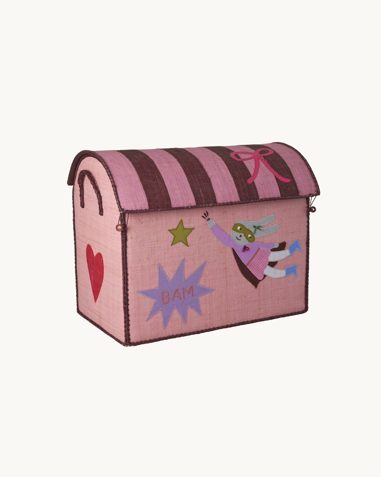 The Raffia Pink Hero Basket is a lovely, embroidered, handmade and practical storage basket.