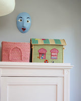 Pretty colours, a practical lid (the roof of the house), and wonderful, embroidered details make this storage basket suitable to place anywhere in the house.