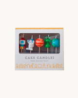 One set includes 5 candles, including a space ship, an astronaut, an alien and two planets.