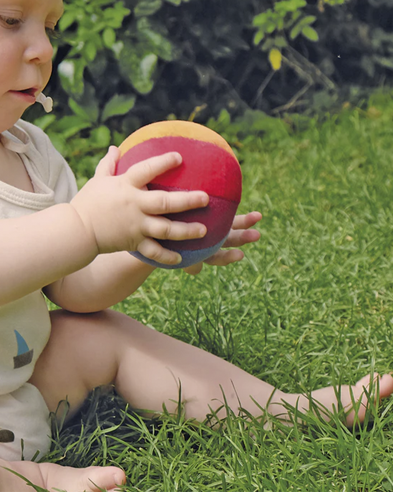 Made from grippy organic cotton terry, this ball is a wonderful toy to grab, push, throw and hold. Comes with a rattle inside that makes a pleasant sound when the ball moves.